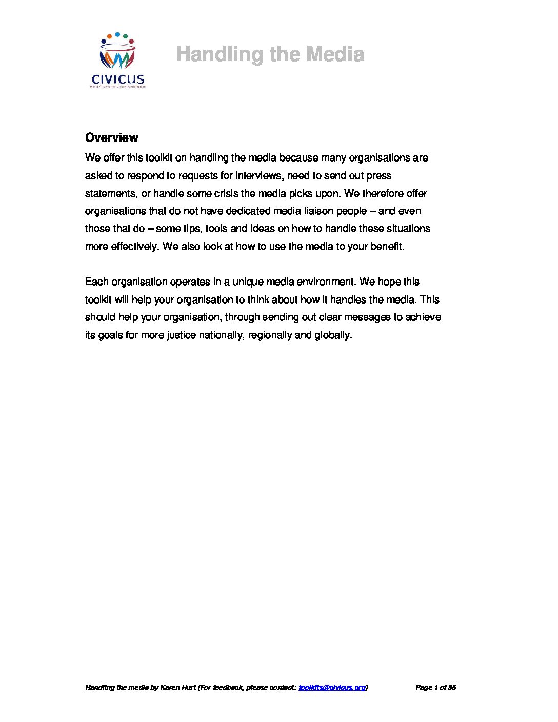 We offer this toolkit on handling the media because many organisations are asked to respond to requests for interviews, need to send out press