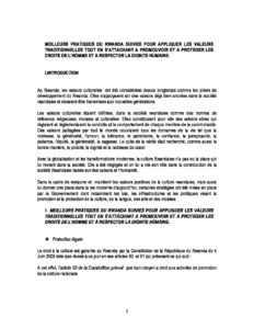 Au Rwanda, les valeurs culturelles ont été considérées depuis longtemps...